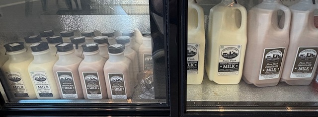 You can even take the goodness home! Half-gallon and pint sizes of Guardian Farms milk and cream are now available in our cooler.